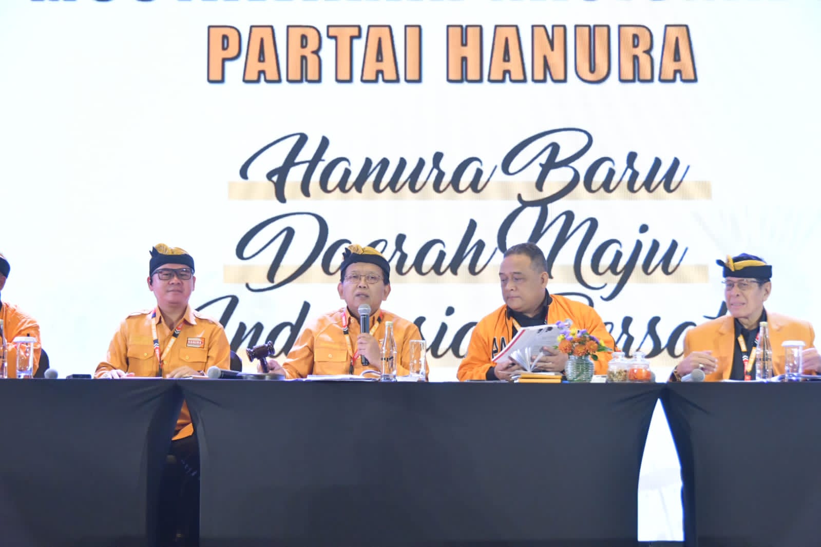 MNT POLITIK — Dr Oesman Sapta Odang (OSO), terpilih secara aklamasi, menjabat sebagai Ketua Umum (Ketum) Partai Hanura, periode 2024-2029, pada acara Musyawarah Nasional (Munas) IV, di The Stone Hotel, Legian Provinsi Bali.